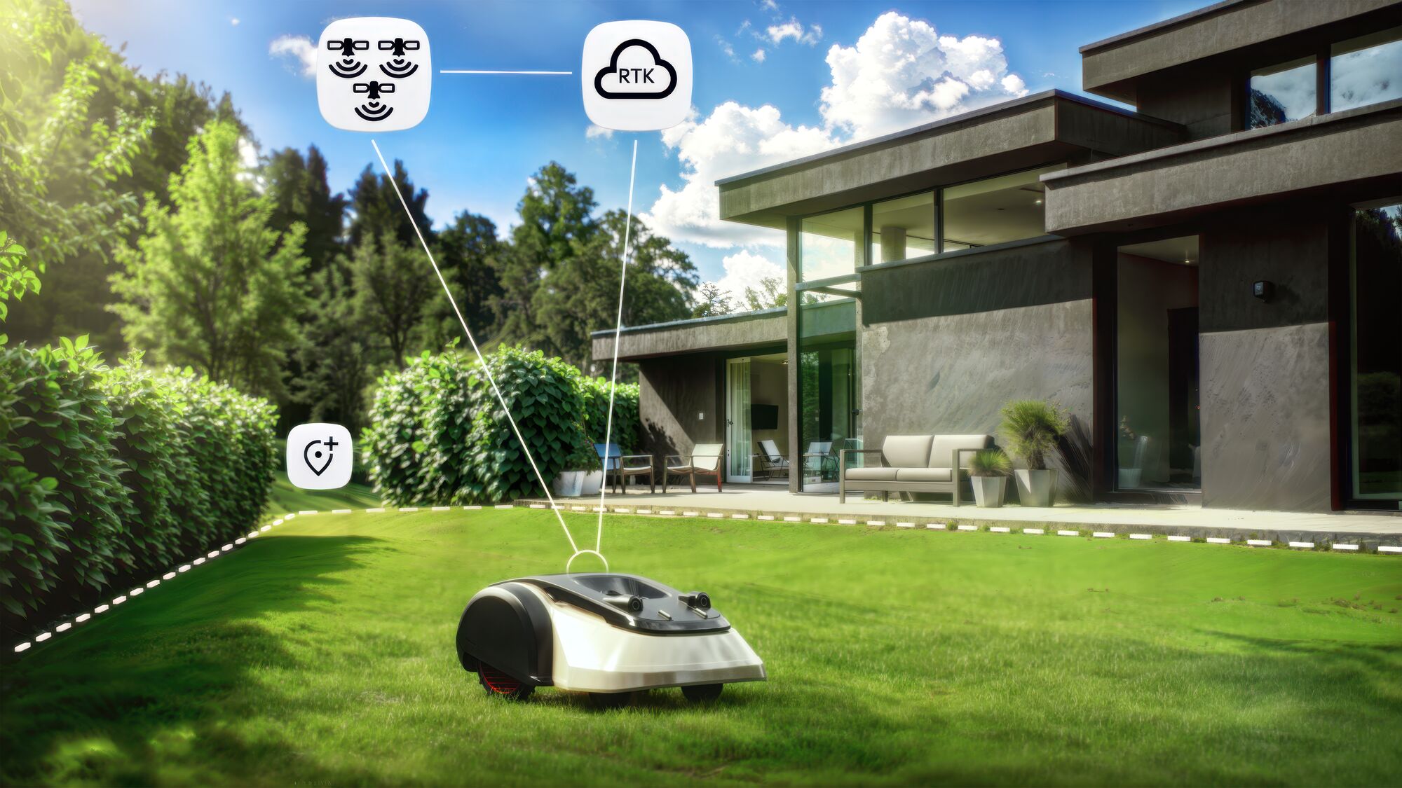 Les modèles sans fil Miimo sont équipés d’un système NRTK sans antenne, associant une puce GNSS haute performance et une connectivité cloud 4G gratuite durant toute la vie du robot. Cette combinaison assure un positionnement d’une grande précision, une communication stable, une tonte parfaitement homogène, et une gestion à distance du robot. Fabriqué en France